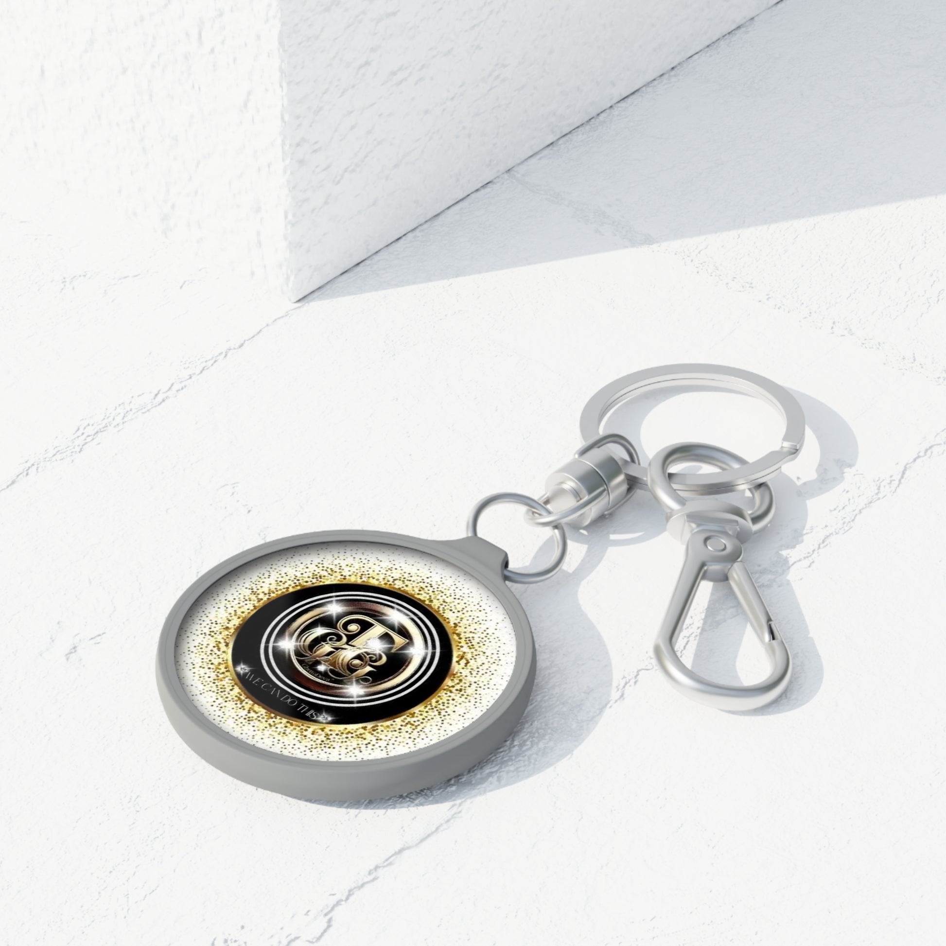 A polished round keyring that brings a touch of refined sparkle to everyday carry. The acrylic face sits beneath a matte TPU cover for a smooth, tactile finish, while crisp, high‑contrast printing highlights the central emblem and surrounding metallic fleck effect. Solid hardware — a split ring, swivel connector, and clip — keeps keys, charms, or bag tabs secure. It feels sturdy in the hand and adds a subtle statement when clipped to a purse, commuter bag, or belt loop.